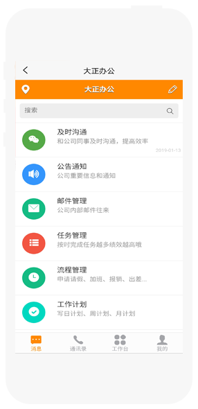 大正OA辦公管理系統(tǒng)功能豐富,主要包括:系統(tǒng)管理、角色管理、用戶(hù)管理、考勤管理、流程管理、公告通知、郵件管理、任務(wù)管理、日程管理、工作計(jì)劃、文件管理、筆記管理、車(chē)輛管理、財(cái)務(wù)管理、通訊錄、討論區(qū)、工作流、企業(yè)通、便簽等等,還有多種顏色皮膚可以切換。以前我們用的是基于SaaS的在線(xiàn)辦公管理系統(tǒng),數(shù)據(jù)放到別人的服務(wù)器里面您會(huì)安心嗎,大正OA最重要的是數(shù)據(jù)都存儲(chǔ)到自己的服務(wù)器里了。