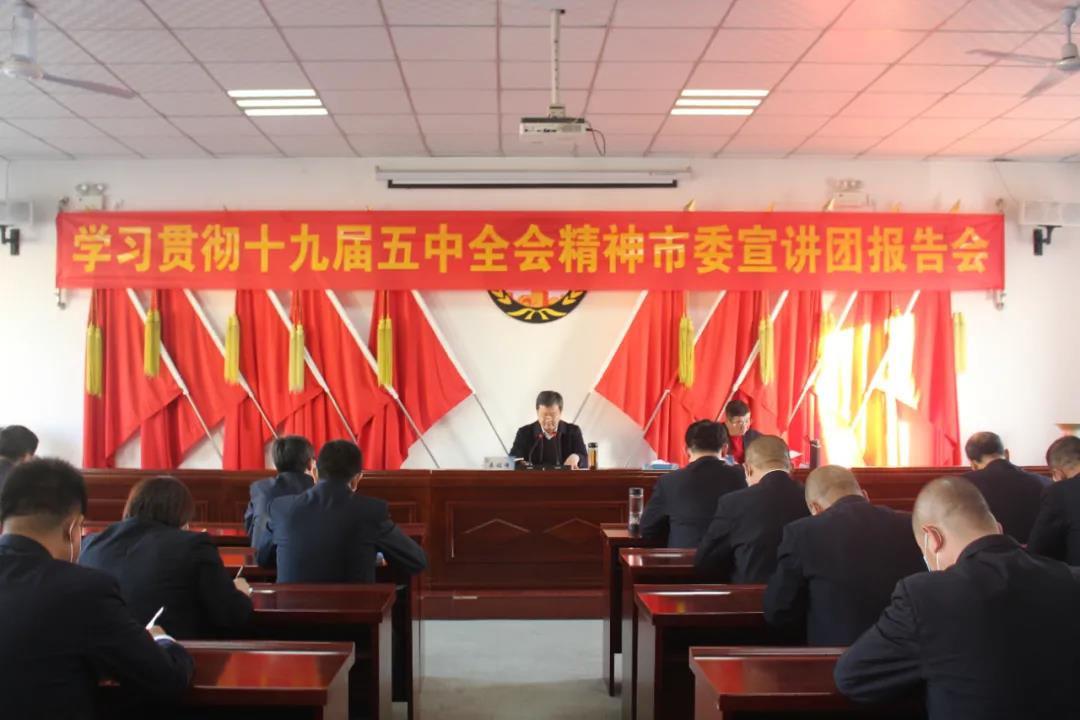 12月4日,學(xué)習(xí)貫徹十九屆五中全會(huì)市委宣講團(tuán)報(bào)告會(huì)在山西大正保安服務(wù)有限公司進(jìn)行。市委宣講團(tuán)成員、市工信局(國(guó)資委)黨委書記、局長(zhǎng)吳瑞峰作宣講報(bào)告。公司黨委書記、董事長(zhǎng)張躍生主持報(bào)告會(huì)。黨委副書記、總經(jīng)理趙培宏等在家領(lǐng)導(dǎo)班子成員及中層副職以上干部50余人參加。吳瑞峰同志從深刻認(rèn)識(shí)我國(guó)進(jìn)入新發(fā)展階段的重大意義、有利條件和重要特征以及準(zhǔn)確把握2035年遠(yuǎn)景目標(biāo)和“十四五”時(shí)期我國(guó)發(fā)展的指導(dǎo)方針、主要目標(biāo)、重點(diǎn)任務(wù)等五個(gè)方面內(nèi)容,結(jié)合當(dāng)前形勢(shì)及國(guó)資國(guó)企改革發(fā)展實(shí)際,對(duì)黨的十九屆五中全會(huì)精神進(jìn)行了深入淺出、全面細(xì)致的宣講。