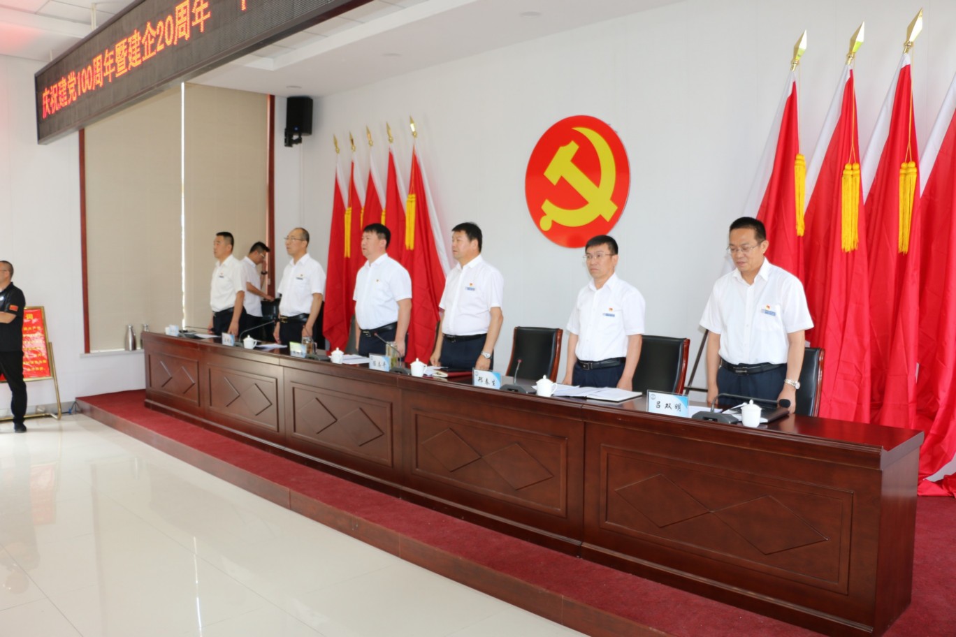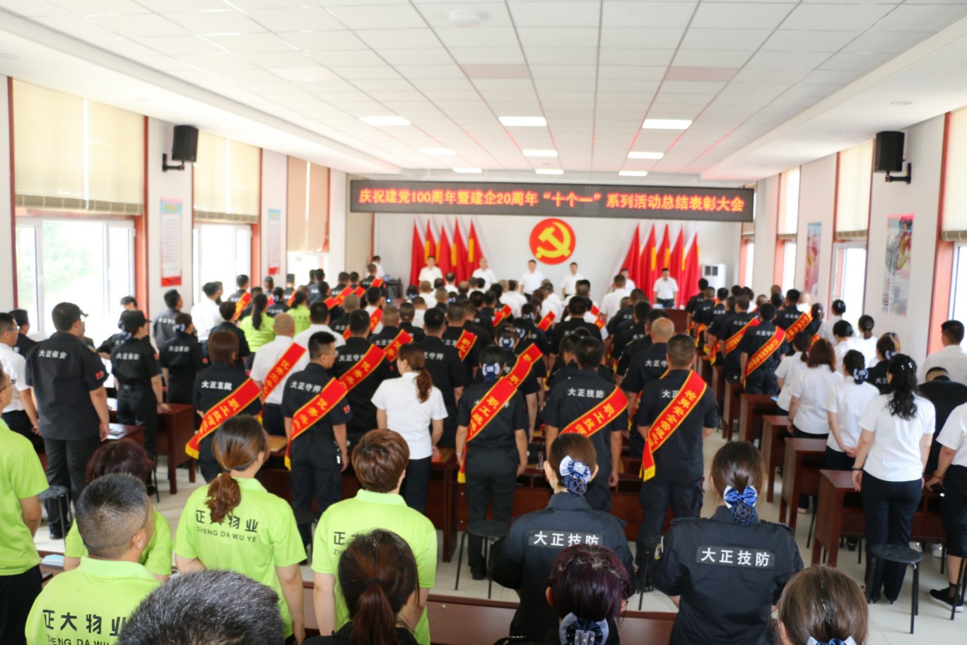 為熱烈慶祝中國共產(chǎn)黨成立100周年,頌揚黨的光輝歷程,謳歌黨的豐功偉業(yè),傳承黨的優(yōu)良傳統(tǒng)和回顧公司發(fā)展歷程,不斷激發(fā)和進一步激勵廣大黨員、干部職工統(tǒng)一意志、團結(jié)拼搏,創(chuàng)先爭優(yōu)的奮斗熱情,實現(xiàn)公司更好更快發(fā)展、全面完成全年各項目標(biāo)任務(wù),6月30日上午,中共山西大正保安服務(wù)集團有限公司委員會隆重召開慶祝建黨100周年暨建企20周年“十個一”系列活動總結(jié)表彰大會,公司班子成員、中層以上領(lǐng)導(dǎo)、受表彰的先進集體代表和先進個人、2020—2021年度新發(fā)展黨員共計160余人參加會議,大會由集團公司黨委委員、副總經(jīng)理王明生同志主持。