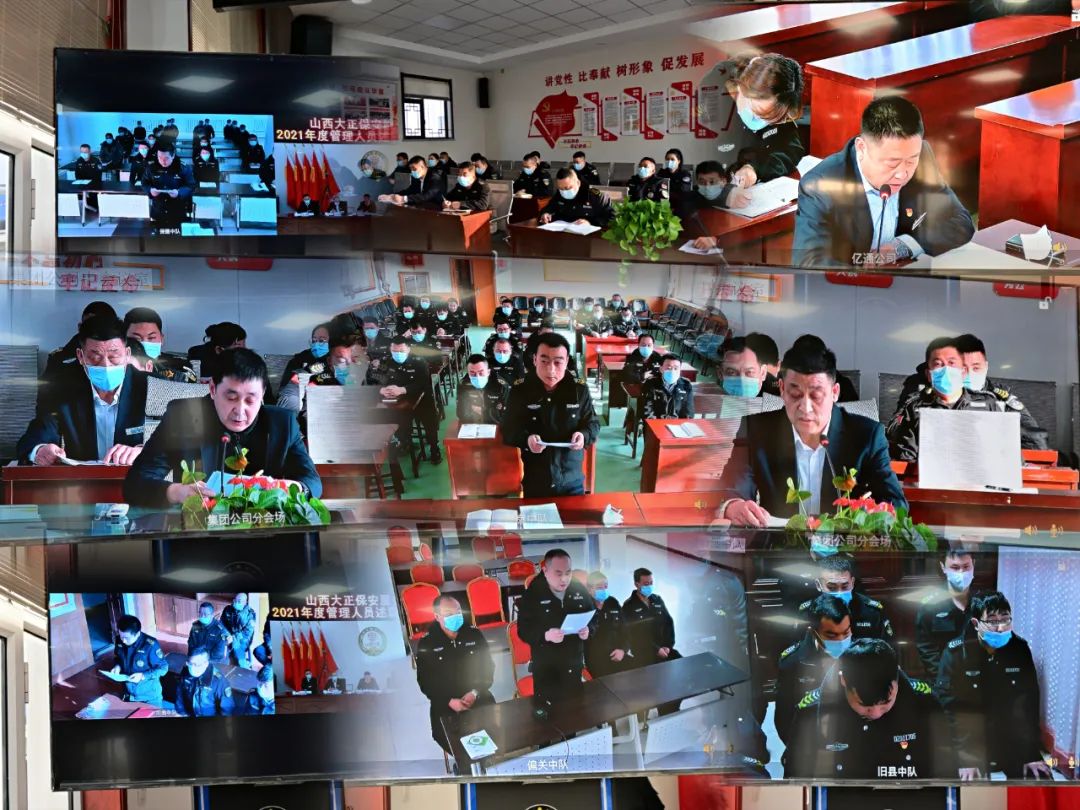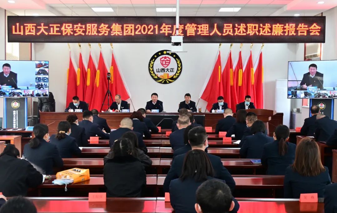 2022年1月8日-9日,山西大正保安服務集團有限公司召開2021年度管理人員述職述廉報告視頻會議,大會主會場設立在總部會議室,黨委副書記、總經理趙培宏出席會議并作重要講話,黨委副書記、副總經理陳志平主持會議,公司黨政領導班子成員出席會議,各部門負責人及員工代表參會,各分公司、子公司、各縣市基層中隊共計21個分會場以視頻方式參會。