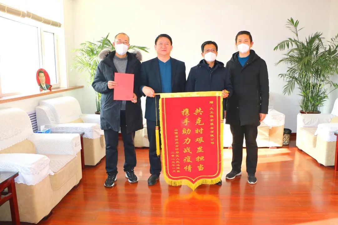 1月9日上午,忻府區(qū)法院黨組成員、副院長黃偉,黨組成員、政治部主任焦旭林帶著寫有“共克時艱顯擔(dān)當(dāng) 攜手助力戰(zhàn)疫情”的錦旗和一封感謝信來到了山西大正保安服務(wù)集團有限公司,表達(dá)對保安公司在疫情防控中無私無畏、甘愿付出的誠摯謝意。大正保安集團公司黨委副書記、總經(jīng)理趙培宏、黨委委員、副總經(jīng)理王明生接洽。自2022年11月6日忻府區(qū)突發(fā)疫情以來,山西大正保安服務(wù)集團有限公司駐忻府區(qū)法院勤務(wù)點的隊員們在陳曉東隊長的帶領(lǐng)下,積極響應(yīng)疫情防控各項要求,除在保障法院關(guān)鍵時期平穩(wěn)運行外,保安公司職員還能夠挺身而出,積極投身防疫點值守、后勤保障、車輛運行、機關(guān)防疫消殺等方面,以實際行動為忻府區(qū)法院疫情防控及機關(guān)安保工作做出了突出貢獻(xiàn)。越是緊要關(guān)頭,越能映照初心;越在關(guān)鍵時刻,越顯擔(dān)當(dāng)使命。面對突如其來的疫情“大考”,大正保安集團積極響應(yīng)號召,主動、迅速地配合我院防疫部署,精心服務(wù)群眾、嚴(yán)格執(zhí)行命令、防范意識到位,助力織密織牢疫情防控網(wǎng),充分展示了大正保安人的職業(yè)素養(yǎng)與責(zé)任擔(dān)當(dāng)。幾年來,山西大正保安服務(wù)集團有限公司駐區(qū)法院全體職員,以法院為家,服從工作需要,積極參與各項審判事業(yè),做到聞令而動,成為不可或缺的中堅力量,為法院跨越式發(fā)展提供了巨大支持。