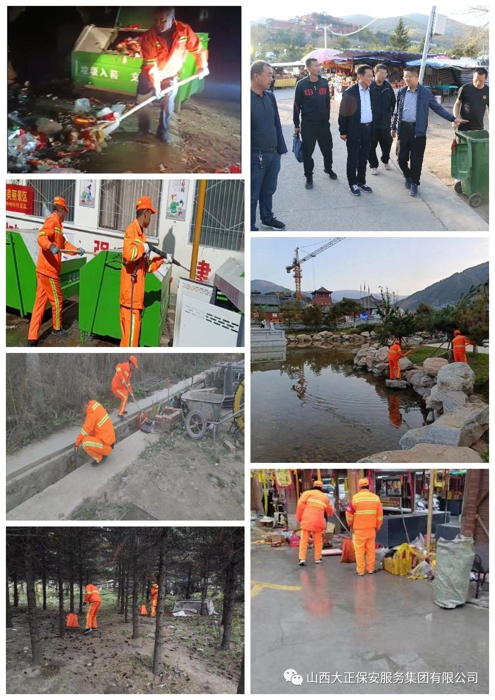 在執(zhí)行勤務(wù)中,全體勤務(wù)人員在各勤務(wù)點(diǎn),清掃垃圾撿煙頭,指揮車輛保暢道,幫助游客答疑解惑,助人為樂做好事,維護(hù)秩序保穩(wěn)定,每一個(gè)角落都有大正人辛勤勞動(dòng)的足跡,每一處地方都有大正人辛苦付出的身影,他們認(rèn)認(rèn)真真做好每件事情,踏踏實(shí)實(shí)干好每項(xiàng)工作,他們講素質(zhì)、講奉獻(xiàn)、講大局,他們樹形象、立標(biāo)桿、揚(yáng)美名,高標(biāo)準(zhǔn)嚴(yán)要求完成好公司領(lǐng)導(dǎo)安排的各項(xiàng)勤務(wù)任務(wù),為企業(yè)爭(zhēng)光,為大正爭(zhēng)榮。