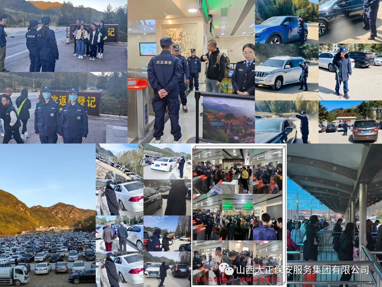9月28日下午,山西大正保安服務(wù)集團(tuán)有限公司抽調(diào)精兵強(qiáng)將200余人,開赴五臺(tái)山風(fēng)景區(qū)執(zhí)行勤務(wù),全體出勤隊(duì)員精神煥發(fā),士氣高昂,整裝出發(fā),他們舍棄“中秋”與家人的團(tuán)聚,放棄“雙節(jié)”假日休息的機(jī)會(huì),以大局為重,忠誠(chéng)奉獻(xiàn),擔(dān)當(dāng)作為。當(dāng)晚指揮部與五臺(tái)山風(fēng)景名勝區(qū)管委會(huì)協(xié)調(diào)溝通,確定執(zhí)勤崗位及人數(shù),9月29日全員上崗,開始為期一周的安保勤務(wù)工作。執(zhí)勤隊(duì)員24小時(shí)不間斷對(duì)游客、車輛進(jìn)行指導(dǎo)、指引,確保游客行得順、玩得暢。10月5日上午,此次安保勤務(wù)工作圓滿完成。