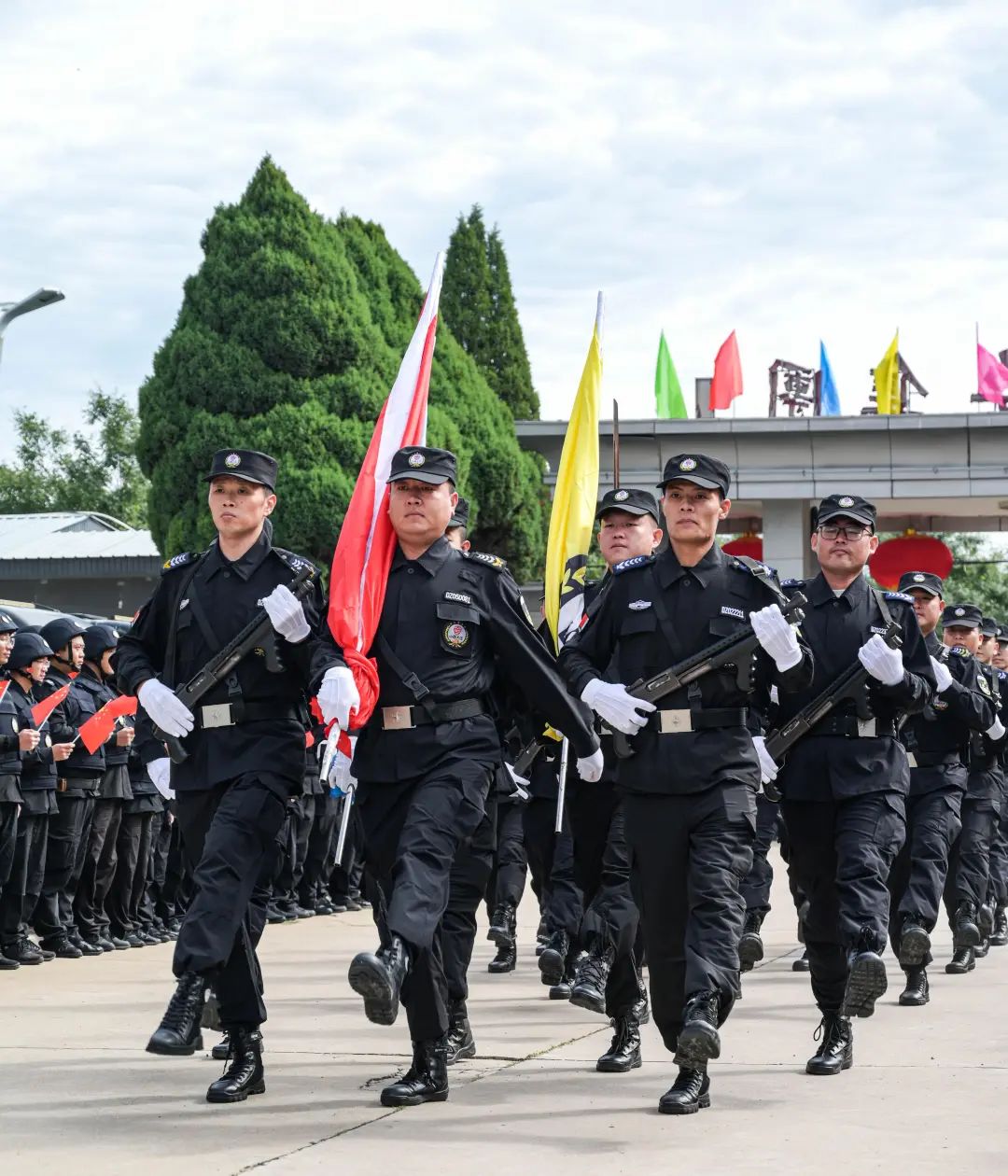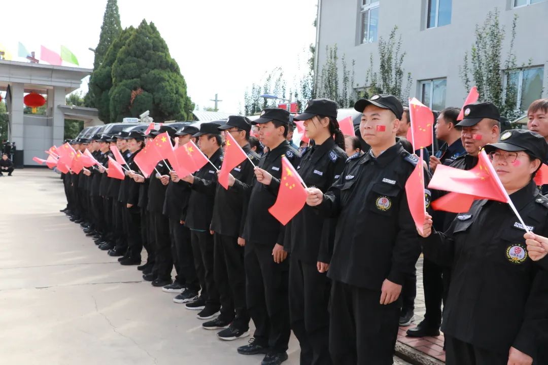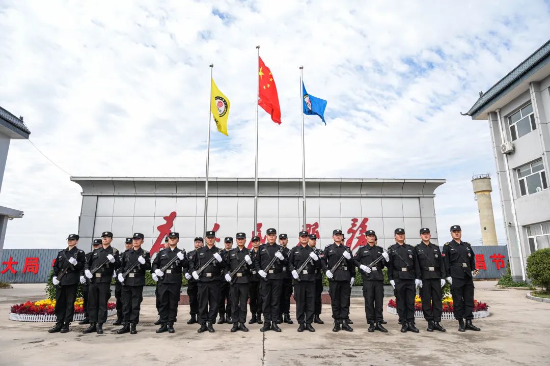 節(jié)日的公司院內(nèi)外,四周花團錦簇,大門口燈籠高掛、彩旗飄揚,為節(jié)日增添了濃厚的喜慶氛圍。公司運鈔車、巡邏車、運兵車干凈整潔,排列在場地兩側,升旗儀式更顯隆重。9時30分,集團公司、各子公司領導和機關各部門、城區(qū)員工共300多人整齊列隊,懷著激動的心情,手持小國旗,臉上貼著愛國貼紙、洋溢幸福的笑容,眼神中充滿了對祖國的熱愛和對升旗儀式的期待。