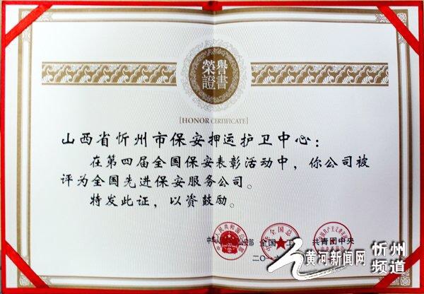 近年來(lái),在市委、市政府和市國(guó)資委的正確領(lǐng)導(dǎo)下,在市公安局的高效監(jiān)管下,忻州市保安押運(yùn)護(hù)衛(wèi)中心各項(xiàng)工作進(jìn)展順利,獲得了山西省五一勞動(dòng)獎(jiǎng)狀、山西省五四紅旗團(tuán)委、山西省先進(jìn)保安服務(wù)公司、山西省優(yōu)秀企業(yè)、山西省青年文明號(hào)、山西省納稅樣本企業(yè)、2015年山西省服務(wù)業(yè)企業(yè)80強(qiáng)等一系列榮譽(yù)表彰。公司將以榮獲公安部、全國(guó)總工會(huì)、共青團(tuán)中央聯(lián)合授予的“第四屆全國(guó)先進(jìn)保安服務(wù)公司”榮譽(yù)稱號(hào)為新起點(diǎn),再接再厲,繼續(xù)圍繞“創(chuàng)建一流保安、押運(yùn)企業(yè)”的奮斗目標(biāo),大力發(fā)揚(yáng)“服從大局、服務(wù)社會(huì)、創(chuàng)新發(fā)展”的企業(yè)精神,為全面推進(jìn)公司健康、安全、快速發(fā)展,維護(hù)全市經(jīng)濟(jì)繁榮發(fā)展、社會(huì)和諧穩(wěn)定譜寫新的篇章。