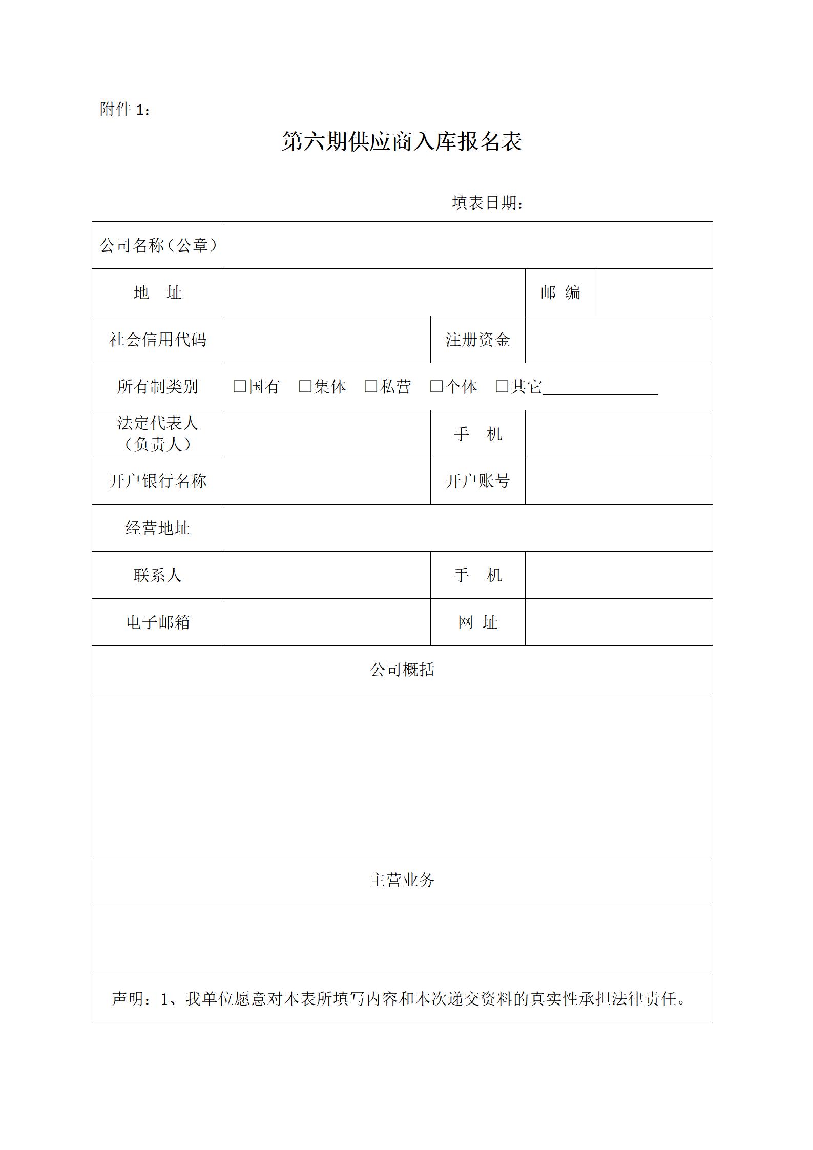 為滿足我公司采購工作需求,現(xiàn)公開征集合格的供應商加入我公司“供應商數(shù)據(jù)庫”,歡迎符合條件的供應商參加報名。