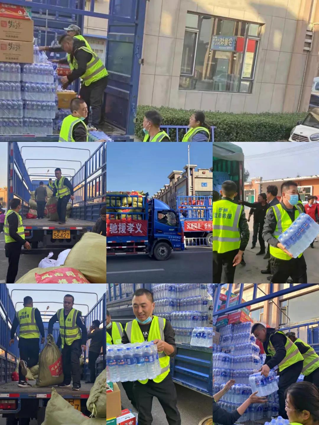 10月16日,山西大正保安服務集團有限公司出動大型貨車兩輛,攜手忻州藍盾應急救援隊(籌)及社會各界愛心人士,裝載著籌集的消毒水40桶、消毒液15箱、方便面320箱、脆筒5箱、礦泉水600件、沙袋4000個、面包35箱、口罩15500個和由忻州實驗小學等籌集的衣物9000余件等物資,驅車奔赴孝義市災區(qū)。