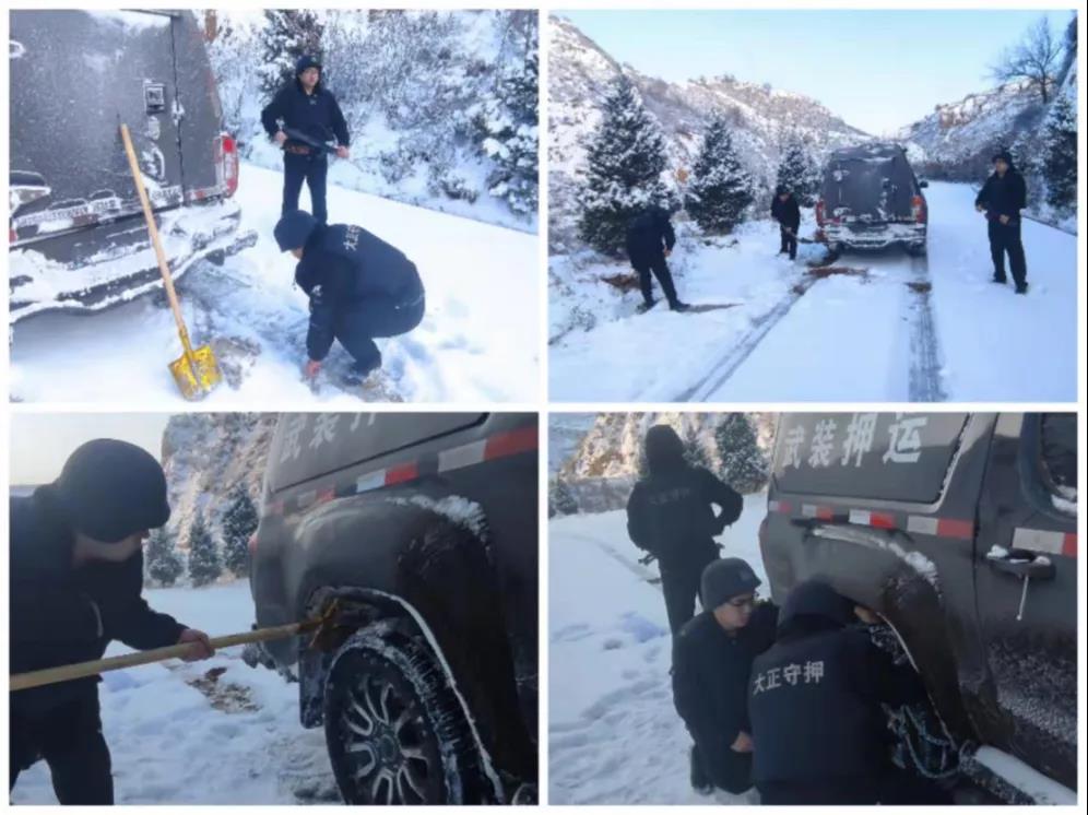 根據(jù)公司守押工作實(shí)際,對(duì)各中隊(duì)人、車、款箱、守庫(kù)室等作出相應(yīng)部署,采取有力措施,囑咐工作人員增添衣物,充分考慮到各市、縣高寒地區(qū)及山路陡峭地段款箱運(yùn)輸實(shí)際,對(duì)車輛加裝防滑鏈,車上準(zhǔn)備鐵鍬等應(yīng)急工具。確保人員、措施到位,堅(jiān)決防范各類事故,切實(shí)維護(hù)客戶單位及人民群眾生命財(cái)產(chǎn)安全。