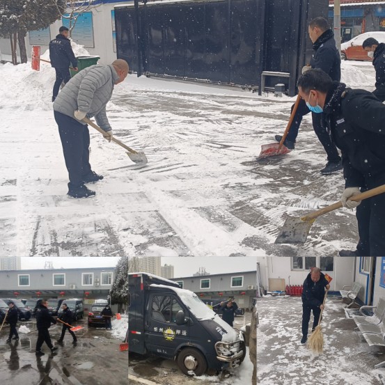 在各中隊安排早上出勤車輛有序出發(fā)后,經(jīng)理楊貴文充分發(fā)揮黨員先鋒模范作用,帶領各中隊員工齊上陣,投入到掃雪活動中,全體隊員不畏嚴寒,充分發(fā)揮了吃苦耐勞、頑強拼搏的戰(zhàn)斗精神,他們手中揮舞著鐵鍬、推鏟、掃把等勞動工具,干勁十足,經(jīng)過幾小時的努力,押運車輛、公司院內(nèi)及周邊道路的積雪全部清理干凈,保障了人員車輛的出行安全,為城區(qū)守押金融業(yè)務穩(wěn)定有序運行提供了強有力的安全保障。