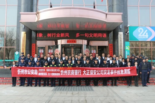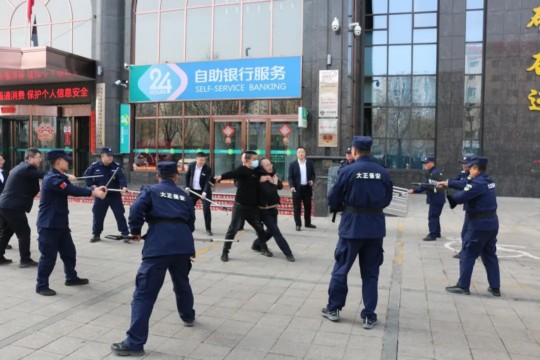 忻州市公安局內(nèi)保支隊班煦副支隊長、直屬分局趙紅偉副局長、巡特警支隊一大隊孫華建隊長、治安大隊檀亮副隊長、大正保安集團黨委委員、副總經(jīng)理王明生出席了演練活動。忻州市農(nóng)商行轄內(nèi)46個支行負責人對演練進行了觀摩。
