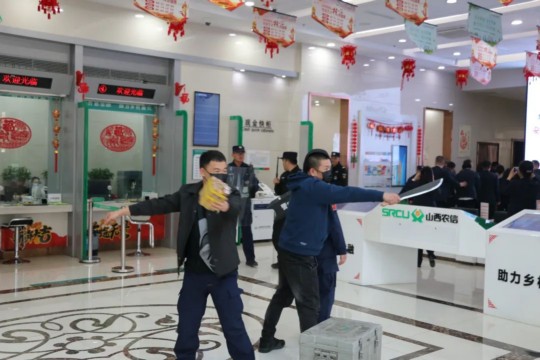 根據(jù)市公安局、銀保監(jiān)局、省市聯(lián)社關于2023年銀行業(yè)突發(fā)事件應急預案演練文件精神,忻州市農(nóng)商銀行于4月1日按照演練方案,對防爆、防搶、防劫持人質(zhì)等15項突發(fā)事件應急處置進行演練,忻州市公安局內(nèi)保、巡特警支隊、直屬分局治安大隊、七一北路派出所及15余名公安干警和大正保安集團20余名守押、安保隊員參加。