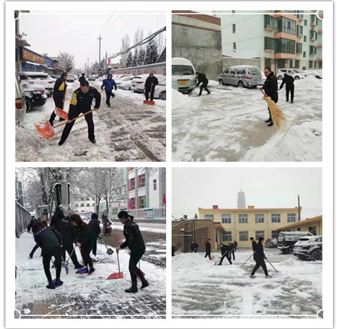 本次活動(dòng),利用1月6日—7日兩天時(shí)間,我公司組織全體員工清掃了位于開(kāi)發(fā)區(qū)、七一南路、逯家莊、氣象北巷、通崗路等處城區(qū)駐地以及分布各縣的基層駐地的院內(nèi)積雪。我公司派駐各單位的保安、物業(yè)基層單位也積極行動(dòng),與服務(wù)單位的同志們一起清掃積雪,有力的保障了服務(wù)單位業(yè)務(wù)正常運(yùn)行。同時(shí),進(jìn)一步延伸清掃范圍,將九原東街北同蒲鐵路線(xiàn)附近,利民西街北九巷附近,七一路小學(xué)及十一中兩所學(xué)校附近等處路面的積雪進(jìn)行徹底清掃,為附近群眾出行提供了便利。