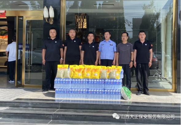6月3日,山西大正保安服務(wù)(集團)有限公司河曲中隊代理中隊長霍健,帶領(lǐng)中隊隊員代表公司慰問了河曲縣公安局交通警察大隊,為奮斗在交通指揮一線的縣交警大隊民警送去防暑降溫慰問品。將關(guān)愛送到一線,把清涼送到一線,確保一線交通干警同志們度過一個安全、衛(wèi)生、清涼的夏季。感謝一線交警不畏烈日、日夜堅守崗位,確保了城區(qū)干道交通暢通、人民出行安全,營造了良好的道路交通環(huán)境。交警大隊副隊長李強接受了慰問,并表示:“有了企業(yè)的關(guān)愛及社會各界的理解和支持,讓交警感受到了無盡的清涼。全體民輔警將繼續(xù)發(fā)揚‘能吃苦、能戰(zhàn)斗、能奉獻’的優(yōu)良作風(fēng),以更加飽滿的工作熱情投入工作中,以實際行動回報社會各界的關(guān)愛。”