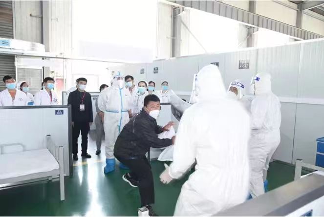 上午10點(diǎn)整,消防演練正式開(kāi)始,在接到消防中控室的指令后,方艙醫(yī)院1號(hào)艙29床發(fā)生火情,全體隊(duì)員迅速穿戴整齊消防服和防護(hù)服在預(yù)定時(shí)間內(nèi)到達(dá)了演練火災(zāi)現(xiàn)場(chǎng),執(zhí)行了打開(kāi)消防栓箱門(mén)拉水帶、擰瞄子、開(kāi)閥門(mén)、緊急疏散病人進(jìn)行警戒撲救滅火等演練科目。消防演練結(jié)束后,全體隊(duì)員迅速進(jìn)入反恐應(yīng)急演練狀態(tài),根據(jù)演練科目?jī)?nèi)容,其中一名隊(duì)員扮演患者情緒失控人員,手持兇器與醫(yī)護(hù)人員發(fā)生爭(zhēng)斗,反恐隊(duì)員收到指令后在最短時(shí)間內(nèi)攜帶防暴裝備進(jìn)入現(xiàn)場(chǎng),到達(dá)現(xiàn)場(chǎng)與鬧事人溝通無(wú)效后,反恐隊(duì)員迅速采取措施將其制服,圓滿完成科目?jī)?nèi)容。