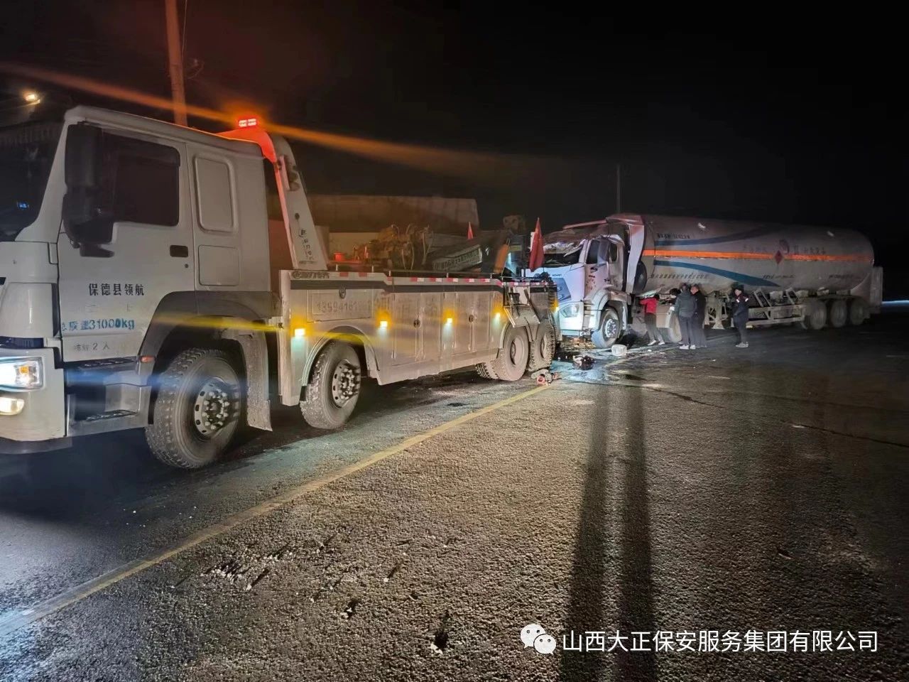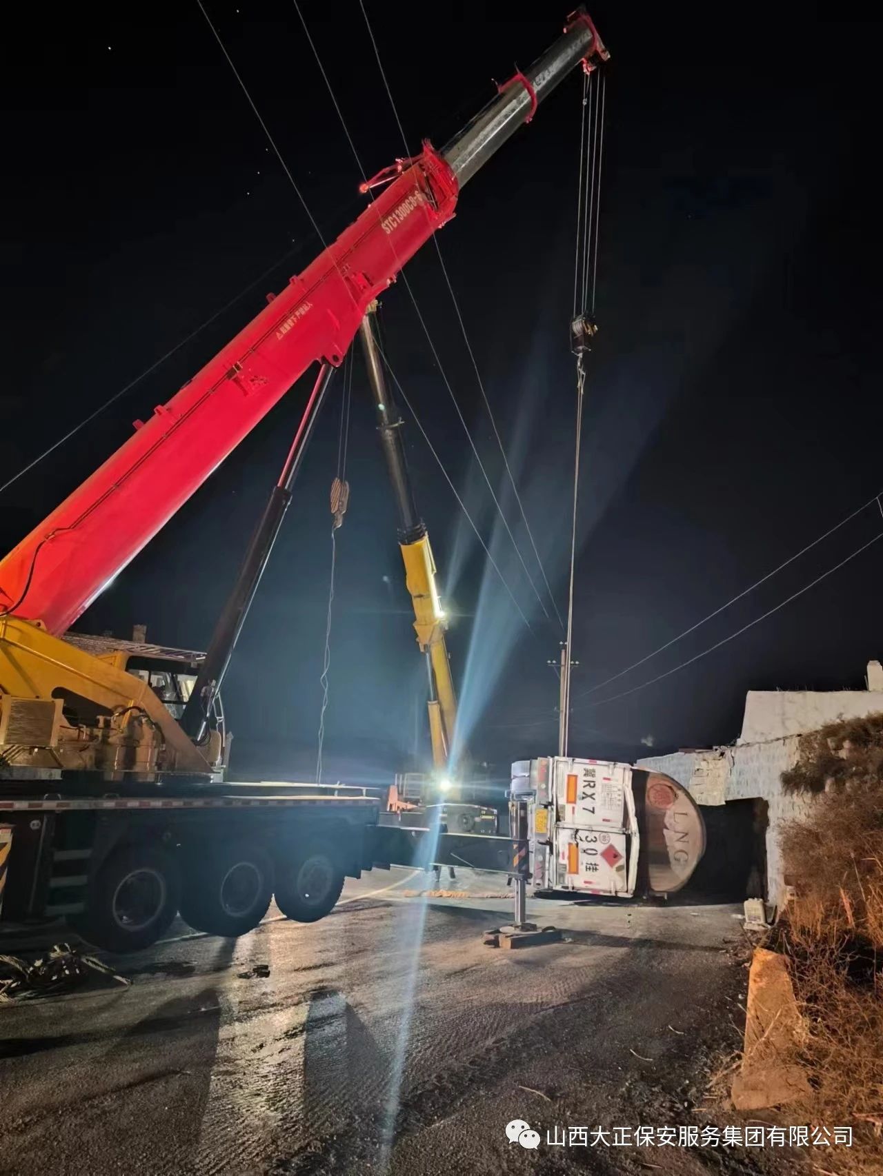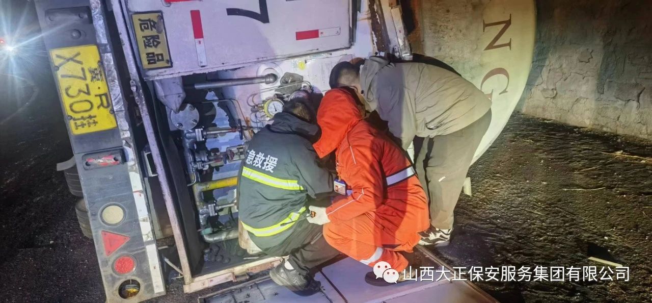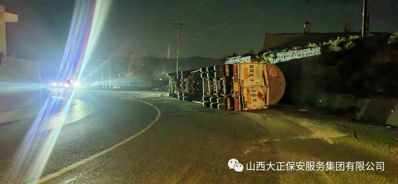 2023年11月23日晚8時,山西大正保安集團公司保德縣守押中隊?wèi)?yīng)急救援大隊接到應(yīng)急局出勤指令,棗林坡有滿載液化氣罐車發(fā)生側(cè)翻,需要派出應(yīng)急人員控制現(xiàn)場,并協(xié)助處理側(cè)翻事故。應(yīng)急救援大隊接到命令后,派出應(yīng)急車輛兩部及應(yīng)急人員5人趕赴現(xiàn)場,協(xié)助交警對現(xiàn)場路段進(jìn)行管控,保證周圍車輛人員安全。