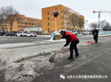 在支部書記張龍的帶領(lǐng)下,同志們冒著雪后嚴寒,掃帚鐵鍬齊上陣,分別在主干道、交通路口及辦公樓區(qū)域開展清掃積雪活動。由于車輛碾壓,雪已凝結(jié)成冰,清理較為困難,但這些卻絲毫沒有影響大家的熱情和效率,大家齊心協(xié)力,分工合作,鏟的鏟,掃的掃,終于將道路的積雪和冰清掃干凈,同志們火紅的志愿服與皚皚白雪相互映襯,形成一道獨特亮麗的風景。熱情驅(qū)寒意,行動暖人心,通暢的道路帶給大家的不僅是方便和安全,更傳遞了一份溫暖和正能量。