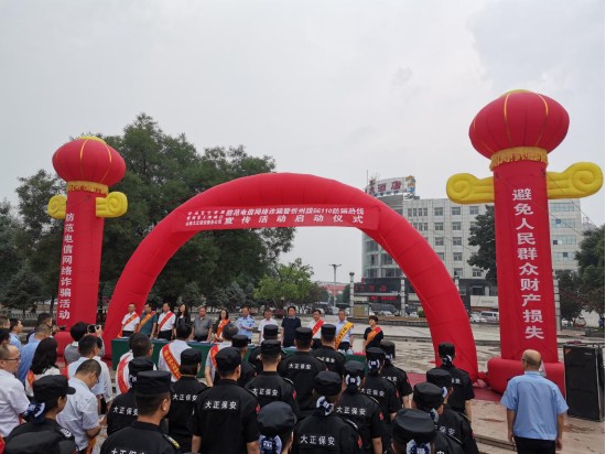 6月11日,山西大正牽手平安文化藝術(shù)公司在日月廣場參加由忻州市公安局、忻州市人民銀行和山西大正保安服務(wù)有限公司聯(lián)合組織開展的“防范電信網(wǎng)絡(luò)詐騙暨忻州撥96110防騙熱線宣傳活動(dòng)啟動(dòng)儀式”。