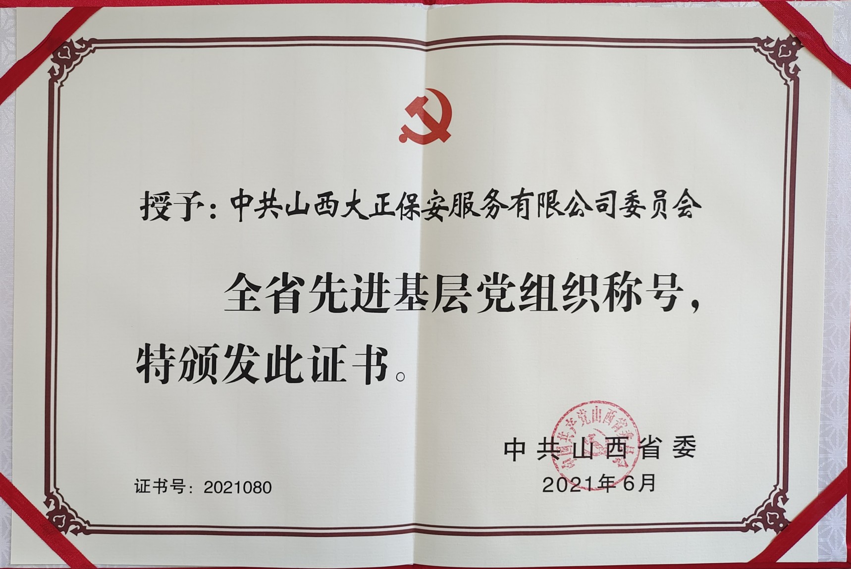 6月22日,在即將迎來(lái)中國(guó)共產(chǎn)黨百年華誕之際,山西省“兩優(yōu)一先”表彰大會(huì)在太原隆重召開。會(huì)上,中共山西大正保安服務(wù)集團(tuán)有限公司委員會(huì)被中共山西省委授予“全省先進(jìn)基層黨組織”榮譽(yù)稱號(hào)。會(huì)議以電視電話會(huì)議形式召開,集團(tuán)公司黨委副書記、副總經(jīng)理陳志平代表集團(tuán)公司黨委在忻州分會(huì)場(chǎng)參會(huì)并領(lǐng)取獎(jiǎng)牌及榮譽(yù)證書。
