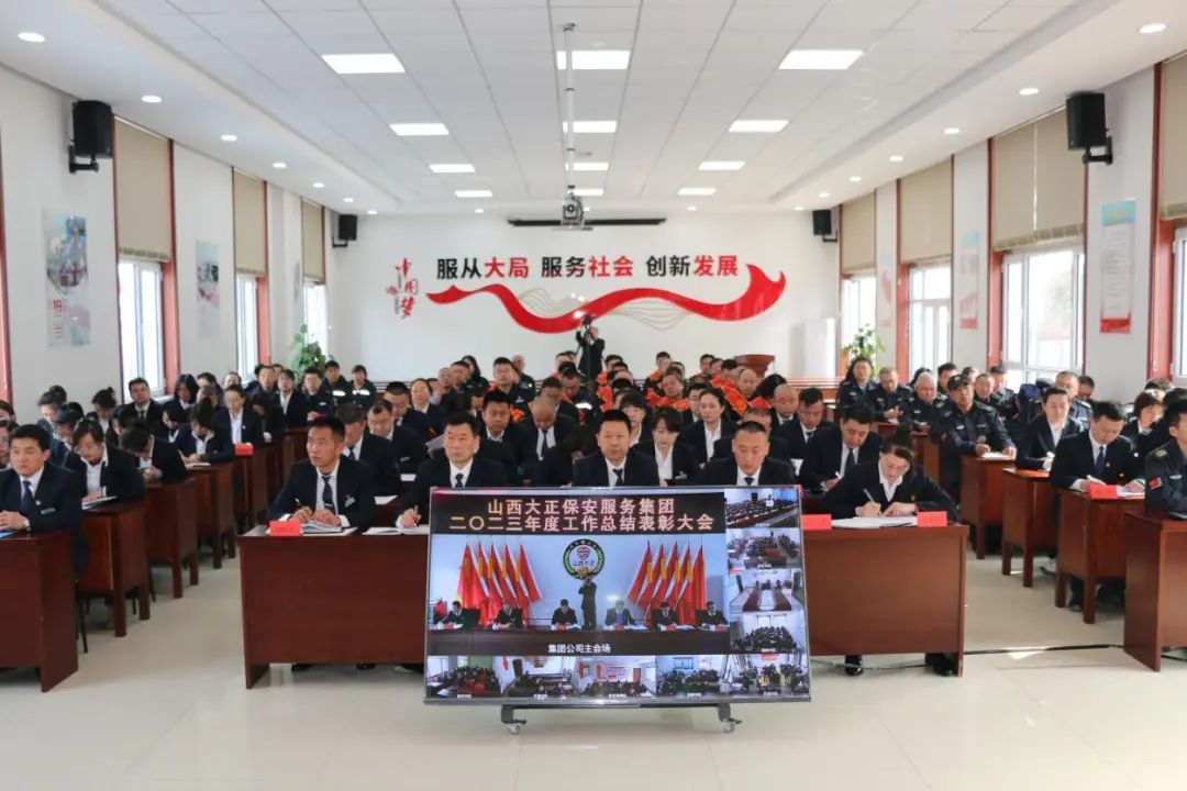 風(fēng)雨兼程二十余載,砥礪奮進(jìn)又一年。2024年2月27日上午,山西大正保安服務(wù)集團(tuán)有限公司2023年度總結(jié)表彰大會(huì)隆重召開(kāi),集團(tuán)公司黨委書(shū)記、董事長(zhǎng)、總經(jīng)理趙培宏出席會(huì)議并作重要講話,市工信局(國(guó)資委)黨委書(shū)記、局長(zhǎng)王卓應(yīng)邀出席并作出重要指示。會(huì)議由集團(tuán)公司黨委委員邢春生主持,本次大會(huì)采取線上線下相結(jié)合的形式,集團(tuán)公司班子成員、各部門(mén)、各子(分)公司負(fù)責(zé)人、各中隊(duì)長(zhǎng)及受表彰的先進(jìn)單位和個(gè)人代表等120人在主會(huì)場(chǎng)參會(huì),各分公司、各縣(市)中隊(duì)員工、基層駐勤保安隊(duì)員通過(guò)視頻會(huì)議直播同步參加本次表彰大會(huì)。