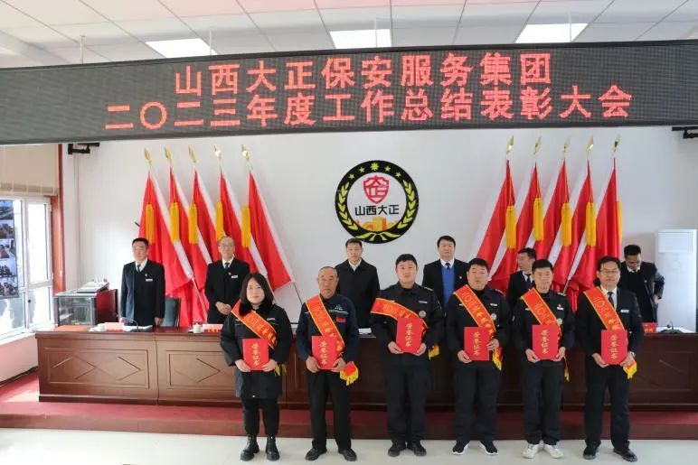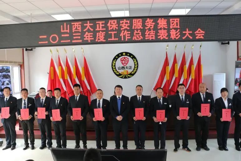 副總經(jīng)理張瑞東宣讀《山西大正保安服務(wù)集團(tuán)有限公司2023年度“雙先”評(píng)比表彰決定》,上級(jí)來(lái)賓和集團(tuán)公司領(lǐng)導(dǎo)為受到表彰的先進(jìn)集體、先進(jìn)個(gè)人代表頒獎(jiǎng)。