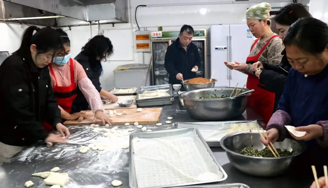 一大早,集團公司的食堂里就熱鬧了起來,并已精心準備好了食材,員工們井然有序的開始了“工作”,有的搟皮、有的揪面團、有的包餡兒,各顯身手,最后呈現出各式各樣的餃子。職工們開心地交流,認真地操作,時而探討心得,忙活的熱火朝天,每個人臉上都洋溢著燦爛的笑容。不一會兒的功夫,一排排獨具個性的餃子很快就擺滿了一個個餐盤,大家體驗著協作的樂趣,感受著節(jié)日的溫情,好一幅冬日溫馨的“全家福”。